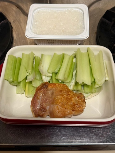 最近為了配合營養師減肥,我的每一餐都必須嚴格執行「低卡路里」原則。今晚的晚餐(如圖),我堅持沒有用一滴油去煎這塊雞扒,但因為實在太懶,連西芹都懶得炒,直接切段擺盤。